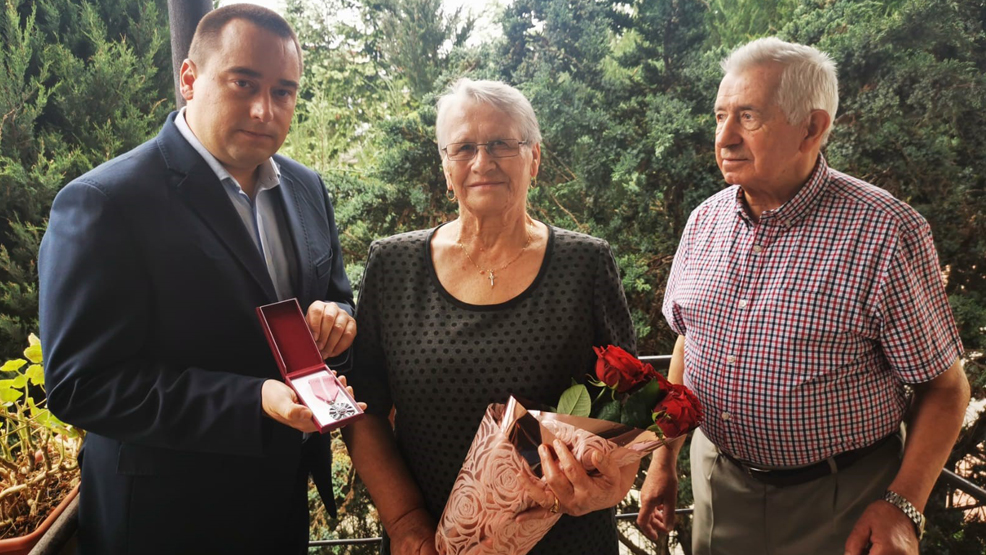 Wśród wyróżnionych małżonków gostyńskiej gminy z długoletnim pożyciem byli jubilaci obchodzący „Żelazne gody" - Helena i Jerzy Kołaczkowscy. Burmistrz wręczył małżonkom medale z okazji 65 rocznicy ślubu.