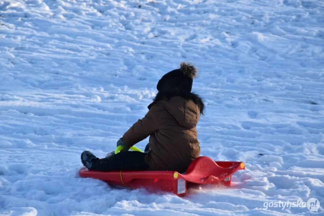 Zabawy na sankach na Górce w Brzeziu. Przyjeżdżają całe rodziny