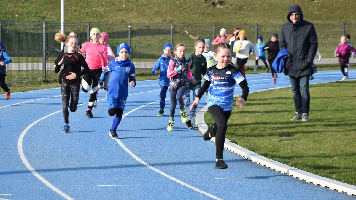 Później na linii startu stanęli dorośli, którzy po rozgrzewce „na własną rękę” - wyruszyli na 30-minutową trasę po bieżni lekkoatletycznej na stadionie OSiR w Gostyniu.