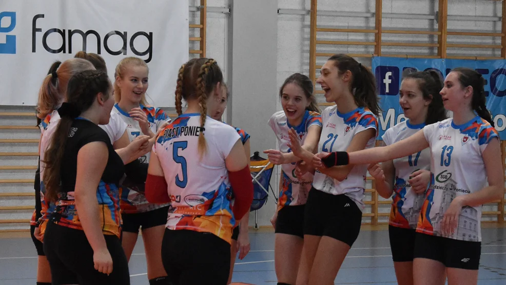 Młode siatkarki Piasta Poniec swój ostatni mecz rozegrały w niedzielne południe. Rywalkami w walce o dziewiąte miejsce był MKS Trzcianka. Pojedynek od początku układ się po myśli zawodniczek Łukasza Kubeczki. W pierwszych dwóch partiach gospodynie wygrały do 17 i 15. Trzeci set padł łupem przyjezdnych. Ostatnia partia była najbardziej zacięta. Piast zwyciężył 25 : 23.