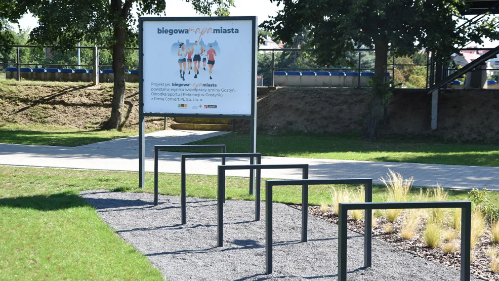 Niewielki, zielony skwer, który funkcjonuje od kilku tygodni, znajduje się na gostyńskim stadionie miejskim (w pobliżu wejścia od ul. Starogostyńskiej), między płytą główną boiska a boiskiem ze sztuczną nawierzchnią. Ozdobiła go biegowa mapa miasta. Wszystko dzięki współpracy gminnego samorządu i OSiR w Gostyniu z firmą Convert PL.