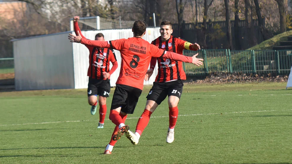 W czwartek swój mecz 13. kolejki rozegrała Pinsel-Peter Krobianka Krobia. Trzynastka nie okazała się pechowa dla zespołu Wojciecha Bzdęgi. Walcząca o awans do czwartej ligi Krobianka do przerwy prowadziła już 3 : 1. Pierwszy do bramki przeciwnika strzałem z dystansu trafił Łukasz Glapiak. Pomocnik gospodarzy miał też udział przy drugim golu. Glapiak wprowadził piłkę do gry z rzutu wolnego. Futbolówka odbiła się od zawodnika gości i wpadła do siatki. W 45. minucie Pinsel-Peter Krobianka Krobia prowadziła 3 : 0. Bramkę zdobył Natan Bujak. Po trzecim golu w szeregi gospodarzy wkradło się rozprężenie, bo w doliczonym czasie do pierwszej połowy goście zmniejszyli przewagę drużyny Wojciecha Bzdęgi. Po zmianie stron Krobianka kontrolowała spotkanie i zdobyła jeszcze jedną bramkę. Na listę strzelców wpisał się Miłosz Urbański.