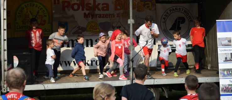 – Najlepiej w biało-czerwonych barwach, jak o to o to prosiliśmy – mówił ze sceny Sławomir Gembiak, który zaraz tradycyjnie poprowadził rozgrzewkę przed wyjściem uczestników na 3,5 kilometrową trasę.
