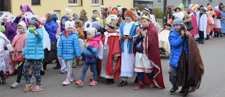 Zrobiły niesamowity raban we wsi, śpiewały, tańczyły, były witane przez dorosłych, którzy obdarowywali je słodyczami. Korowód dotarł do kościoła, gdzie na uczniów czekał ksiądz proboszcz ks. Wiesław Wittig, pomysłodawca pochodu.