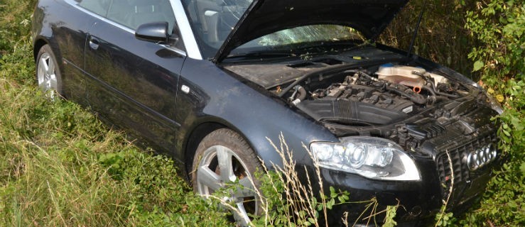 Dziś około godz. 11.00 na trasie Krobia - Pudliszki Audi A4 wpadło do rowu.