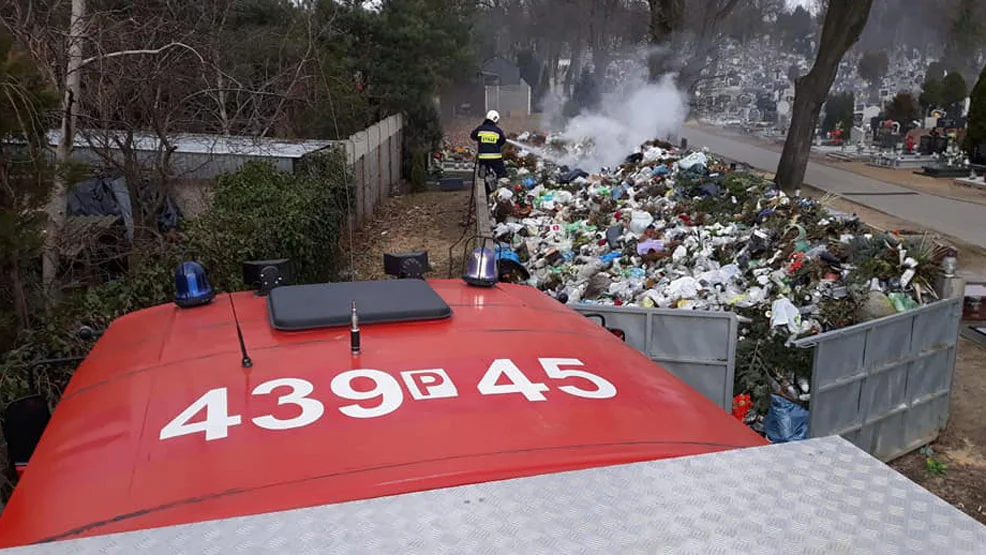 W tym samym czasie do gostyńskiej straży pożarnej dotarło także inne zgłoszenie o pożarze śmietnika przy cmentarzu parafialnym przy ul. Jana Pawła II w Gostyniu.