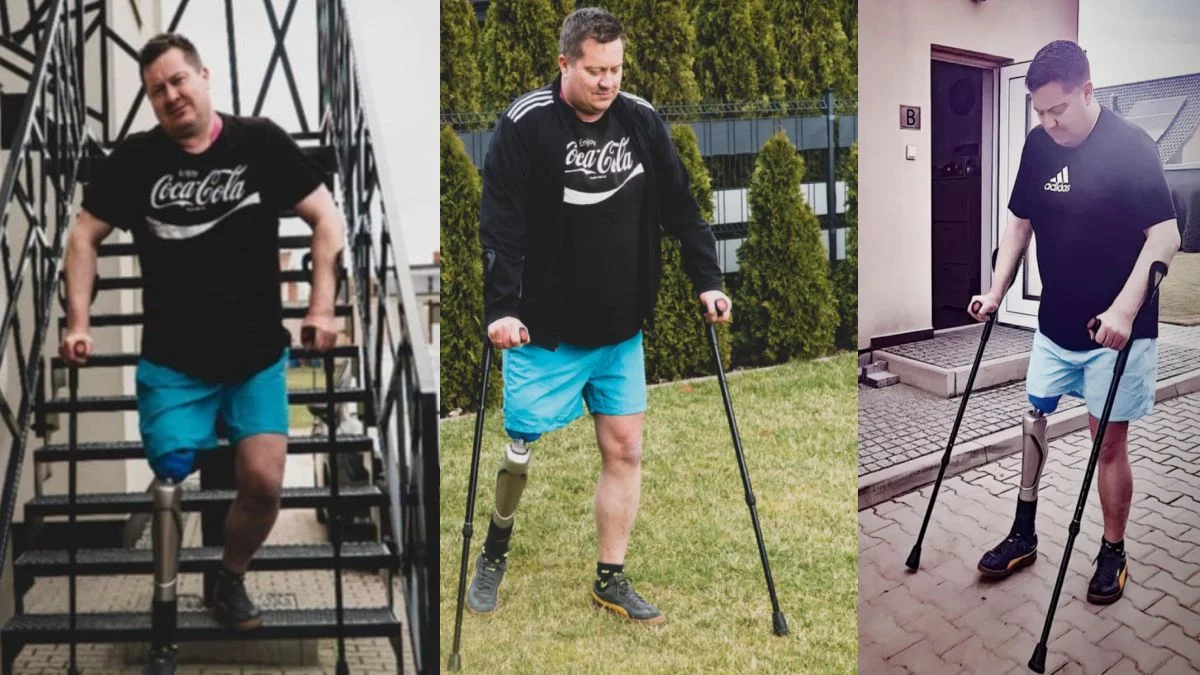 Po odbiorze protezy z firmy Otto Bock w Poznaniu, gdzie specjaliści przez trzy dni pokazywali mu, jak użytkować urządzenie i gdzie stawiał pierwsze kroki, 43-latek próbuje chodzić. Póki co przy pomocy kul, dookoła domu.