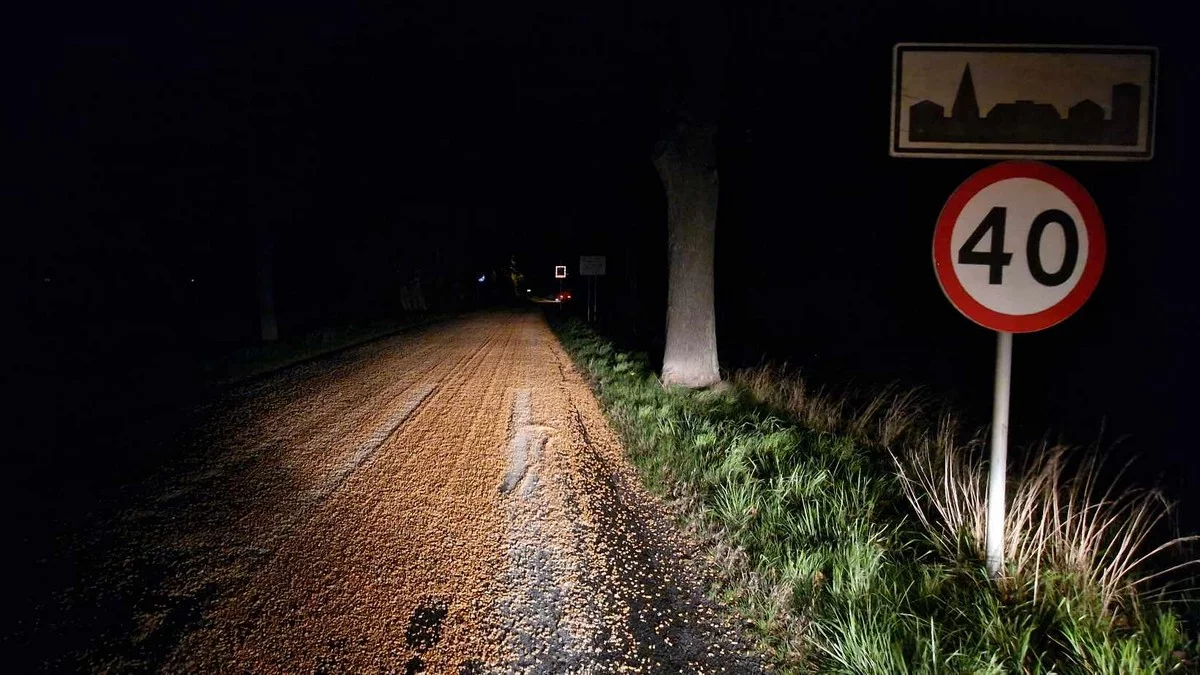 Strażacy apelują, by omijać miejsca, w których rozsypana jest kukurydza i, o ile to możliwe, wybierać alternatywne trasy.