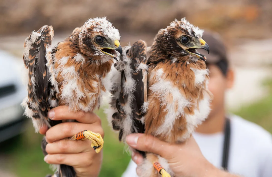 Ptaki z gniazd, które pan Adam znajduje, są obrączkowane, kiedy mają 3-4 tygodnie. Pan Adam stara się na tę ceremonię zapraszać właścicieli pól, by pokazać im, na czym polega ochrona lęgów i w jakim celu jest prowadzona. Rolnicy mają okazję poznać ten gatunek drapieżnych ptaków.