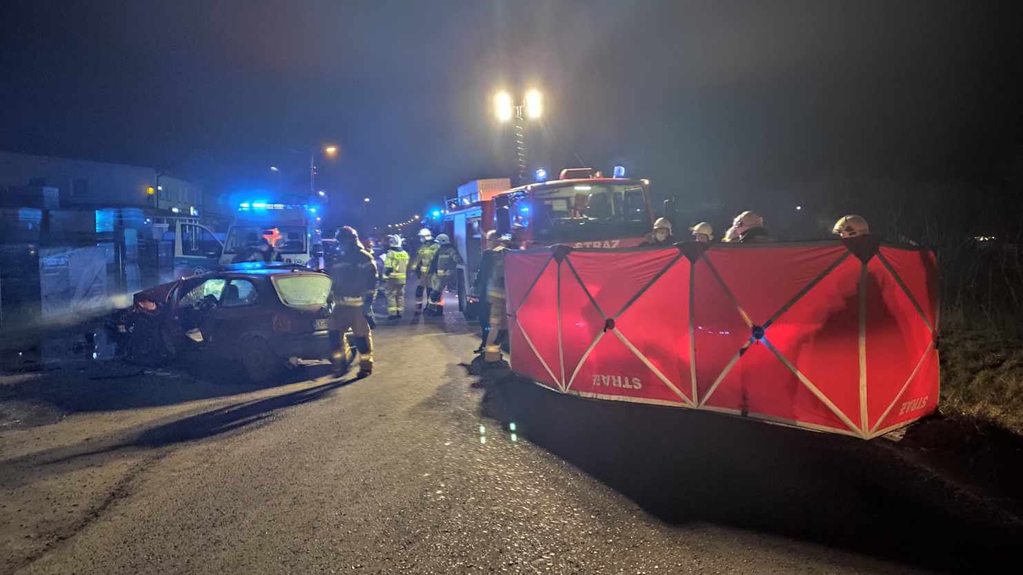 Czołowe zderzenie w Pępowie [zdjęcia]