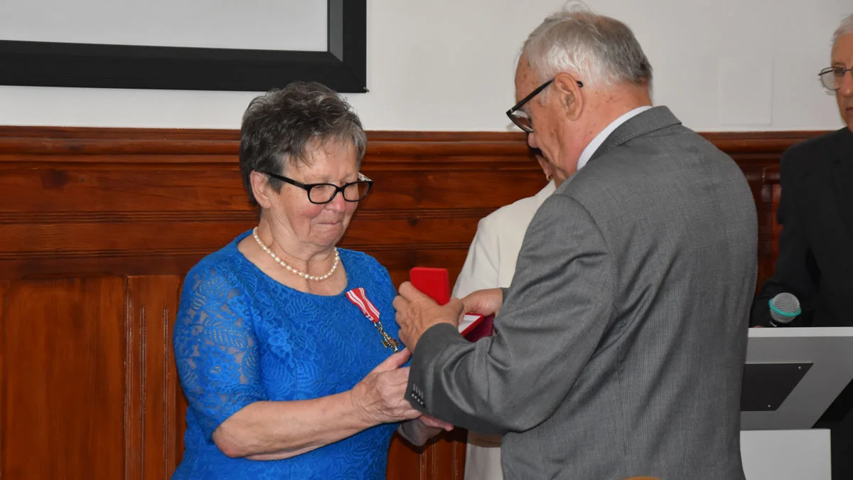 Kiedy nadszedł główny moment uroczystości, harcerze przynieśli odznaczenia przed stół prezydialny. Janina Felsmann-Pawlik, przewodnicząca komisji ds. odznaczeń i wyróżnień wręczyła Odznakę za zasługi dla ZKRPiBWP, która jest nadawana osobom ze szczególnymi zasługami dla rozwoju działalności związku. Jak się okazało, przykładem wzorcowych działań są członkowie koła miejsko-gminnego ZKRPiBWP w Gostyniu.