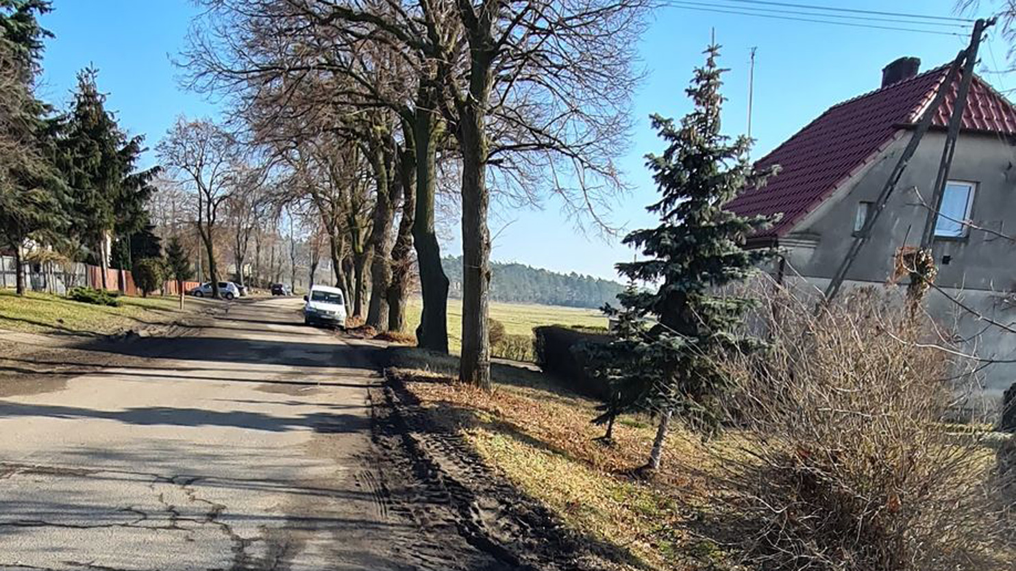 Mężczyzna twierdzi, że asfalt na wspomnianej ulicy jest pozarywany. Ciężkie auta, aby się minąć, wjeżdżają na łąki.