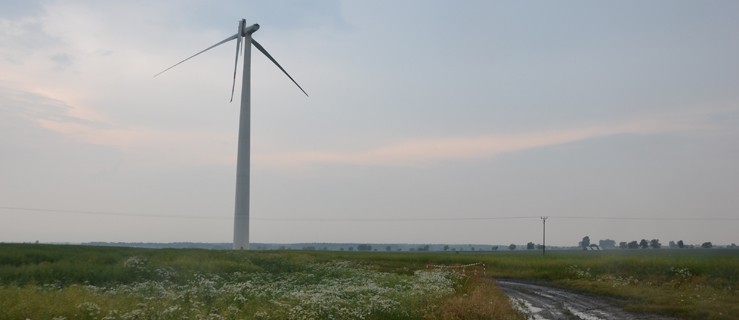 Burza, jaka przeszła przez powiat gostyński dziś po południu nie oszczędziła farmy wiatrowej Krobia - Południe. Piorun uderzył w jeden z wiatraków w okolicy Przyborowa i złamał śmigło (dokładnie - łopatę wirnika z włókna szklanego).