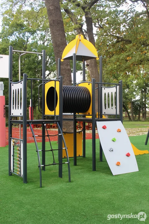 - W ramach zadania wykonano korytowanie na całej szerokości placu, profilowanie i zagęszczanie podłoża pod warstwy konstrukcyjne nawierzchni. Powstała podbudowa z kruszyw łamanych i nawierzchnia ze sztucznej trawy na podkładzie elastycznym, co wpłynie na bezpieczeństwo dzieci korzystających z placu zabaw. Zamontowano ponadto atestowany zestaw zabawowy oraz huśtawkę podwójną z bocianim gniazdem - wylicza Joanna Jakubiak, naczelnik Wydziału Promocji i Rozwoju Starostwa Powiatowego w Gostyniu.