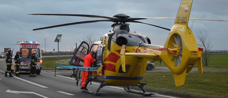 Kierowca skody odniósł ciężkie obrażenia, był przytomny, ale nie mógł samodzielnie wydostać się z auta. Pomogli mu strażacy z jednostki ratowniczo-gaśniczej w Gostyniu oraz z OSP w Krobi, używając specjalnych narzędzi do rozcinania karoserii. Nie zabrakło też ratowników medycznych, którzy udzielili poszkodowanemu pierwszej pomocy. Konieczne jednak było wezwanie śmigłowca LPR. Helikopter wylądował na drodze wojewódzkiej, a później przetransportował poszkodowanego kierowcę do leszczyńskiego szpitala. Miejsce lądowania zabezpieczali strażacy oraz policja. Droga była zupełnie nieprzejezdna.