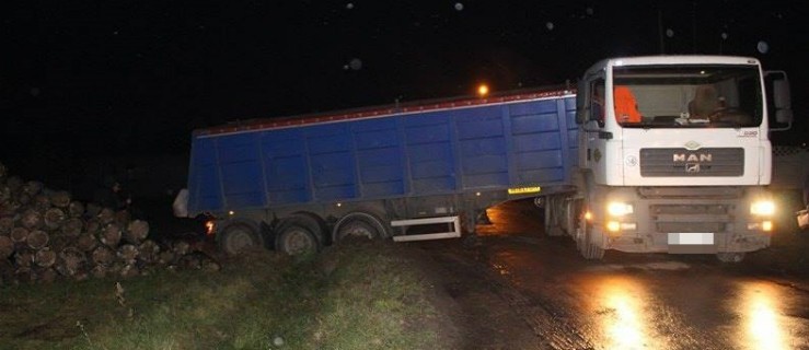 - Wiozę asfalt na budowę drogi do Tworzymirek. Chciałem nawrócić ale koła ześlizgnęły się i zostały w błocie. Czas nas goni, bo masa zastygnie i nie będzie nadawać się już do ułożenia – mówił kierowca samochodu ciężarowego. Na miejsce wezwano specjalistyczny sprzęt, który ma ułatwić wydostanie naczepy z rowu.