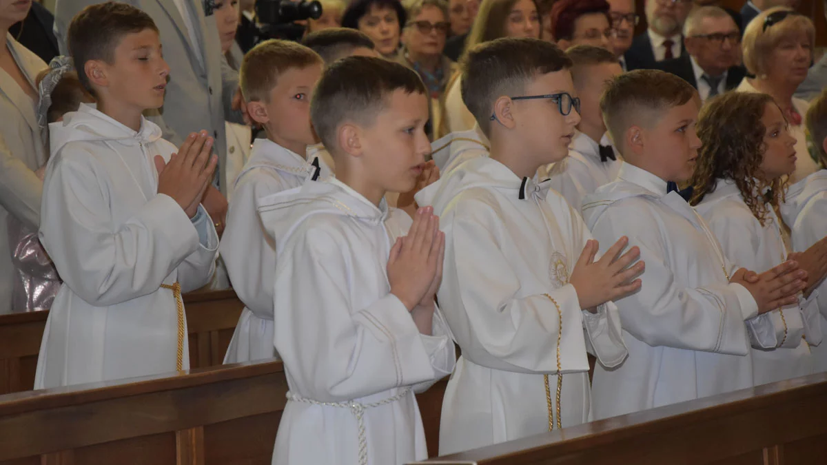 - Proszę dobrego Boga w czasie najświętszej ofiary, w intencji tych dzieci, które dzisiaj przystąpią do pierwszej komunii świętej, abyście mieli siłę przekazywać te dary łaski, które Bóg kieruje do waszych dzieci, niech ten dzień zapisze się w waszych sercach, drodzy rodzice i w sercach waszych dzieci - mówił ks. Franciszek Sikora, podczas mszy św. w kościele na osiedlu Pożegowo w w Gostyniu.