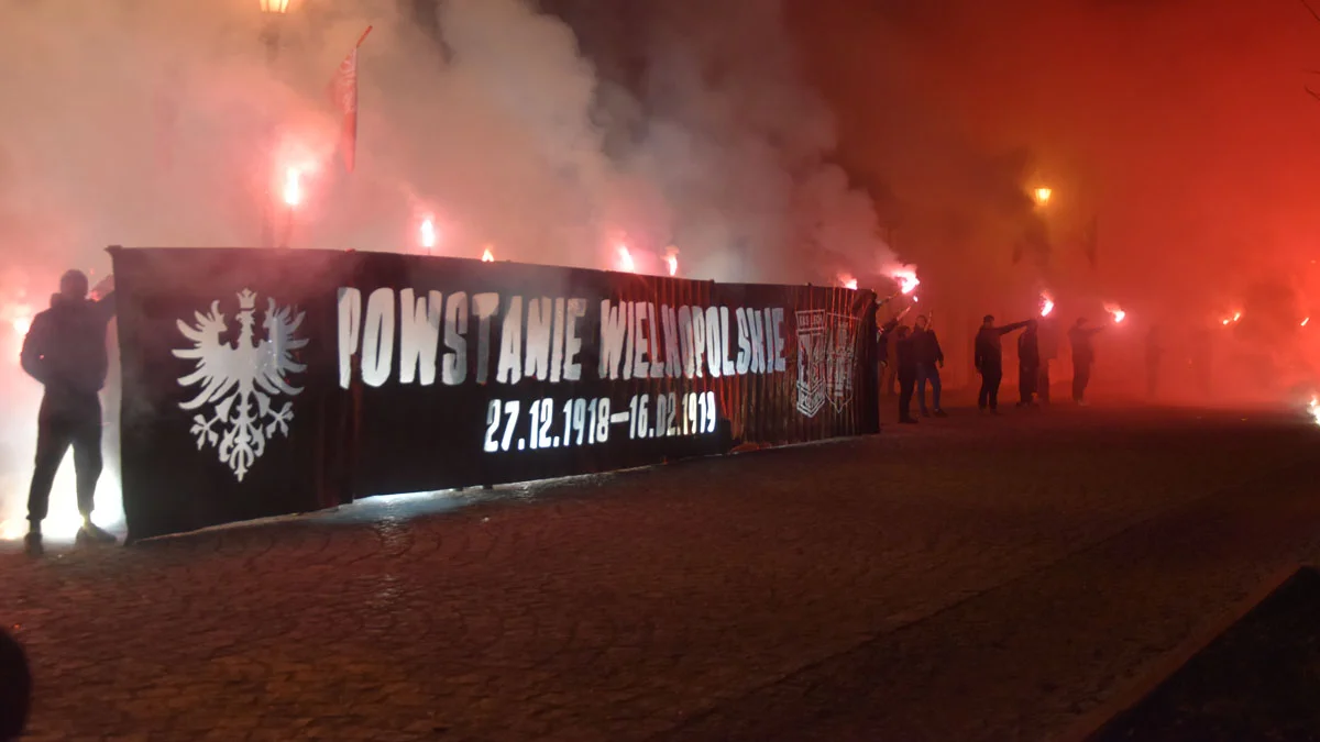 Następnie, kiedy na rynku z głośników zabrzmiała "Rota", gostyńscy kibice Lecha Poznań, ustawieni z banerami i powstańczymi flagami odpalili race na znak upamiętnienia wybuchu Powstania Wielkopolskiego.