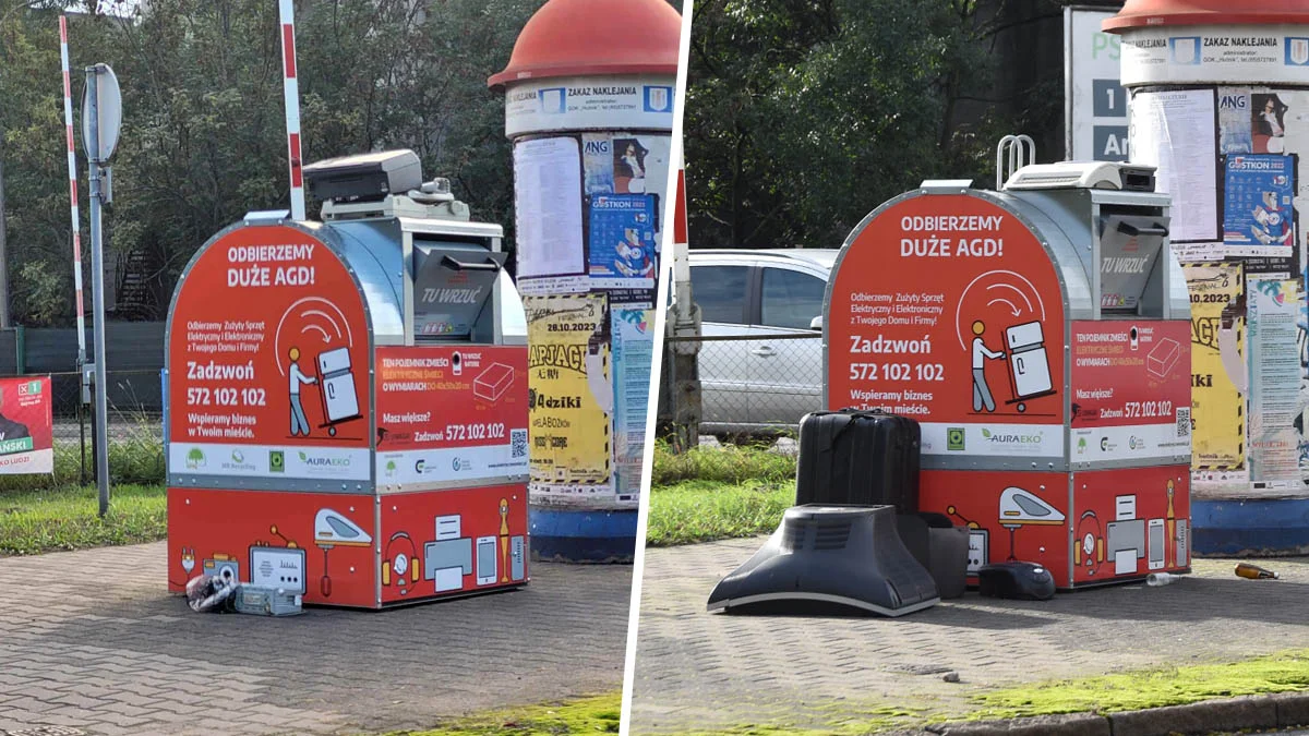 - Użytkownicy nie czytają informacji, umieszczonych w widocznym miejscu na pojemniku. Nie wszyscy przestrzegają też regulaminu. W wielu przypadkach wpychają sprzęt na siłę, a kiedy się nie zmieści, zostawiają zablokowaną wrzutnię i wówczas mamy złudzenie, jakby pojemnik był przepełniony. Kolejny potencjalny użytkownik, który chce wyrzucić sprzęt, zostawia go pod pojemnikiem. I robi się bałagan - mówi R. Magolon. - Podjeżdżamy i sprzątamy, a często też odblokowujemy wrzutnię, gdyż okazuje się, że pojemnik jest zapełniony tylko częściowo - uzupełnia.