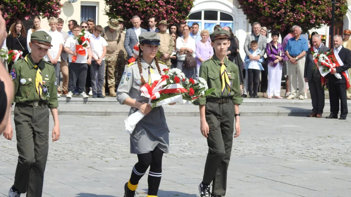 Po przemówieniu przyszedł czas na złożenie wieńców i wiązanek kwiatów pod Pomnikiem Serca Jezusowego przez delegacje szkół, jednostek gminnych, przedstawicieli instytucji oraz organizacji pozarządowych, działających na terenie gminy Gostyń.