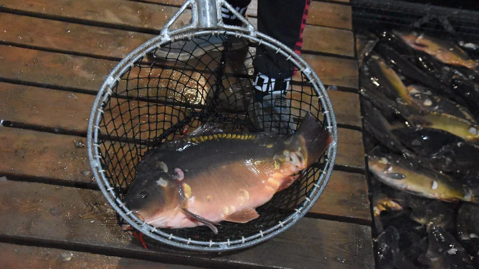 - Otwierając sezon, już mieliśmy około 25-35% mniej ryb niż zwykle. Powód? Było bardzo mało materiału zarybieniowego w postaci kroczka, czyli na drugi etap zarybiania. Pełnej obsady stawów nie byliśmy w stanie zrobić. W zeszłym roku ryby też się wcześniej skończyły i nie mają odpowiedniej wagi. Zawsze coś po takich żniwach zostawało. Przez rok ryby rosły, ważyły od 2,5 do 3 kilogramów, albo więcej - wyjaśnia Dawid Kamiński.
