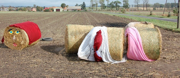 W boreckim ośrodku kultury wciąż trwają dożynki parafialno-gminne. Aby zachęcić mieszkańców (a także osoby, będące przejazdem w gminie) do udziału w imprezie, przy najważniejszych wjazdach do miasta ustawiono malownicze dekoracje. Bardzo ładnie i dumnie na polach prezentowali się gospodarz i gospodyni w kolorowych strojach, wykonani ze słomianych balotów. „Trzymany” przez nich baner informował, jaka to impreza niebawem odbędzie się w boreckiej gminie. Reklama dożynek została wykonana orzez organizatorów „na szóstkę”. Ale ktoś tego nie uszanował, nie spodobała się taka promocja.