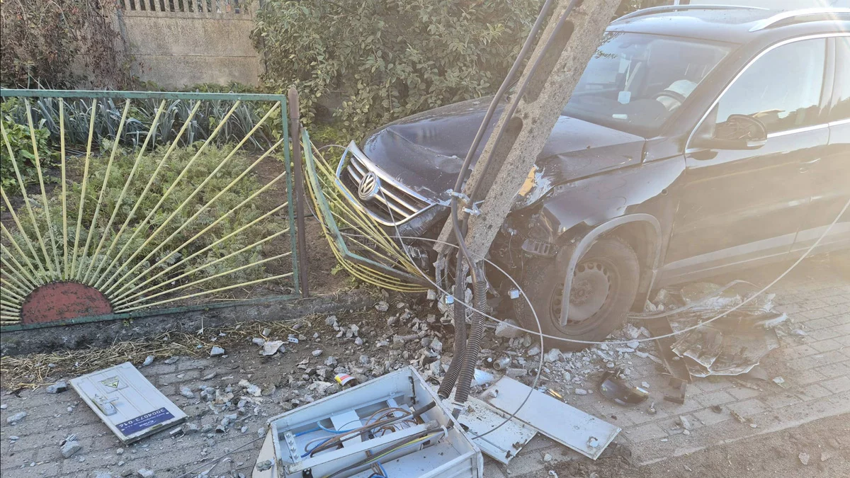 Zniszczył słup energetyczny, ogrodzenie i samochód