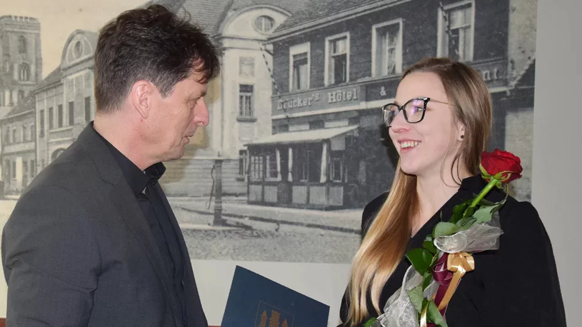 Nowy akt nadania stopnia awansu zawodowego otrzymała w piątek, 20 grudnia. Wręczający - zastępca burmistrza Gostynia Grzegorz Skorupski - złożył awansowanej nauczycielce serdeczne gratulacje i przekazał życzenia dalszych sukcesów w pracy zawodowej.