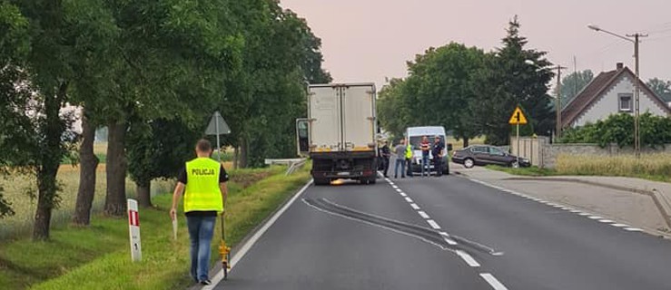 Kierowca ciężarowej scani (62-letni mieszkaniec powiatu) miał potrącić młodego mężczyznę.