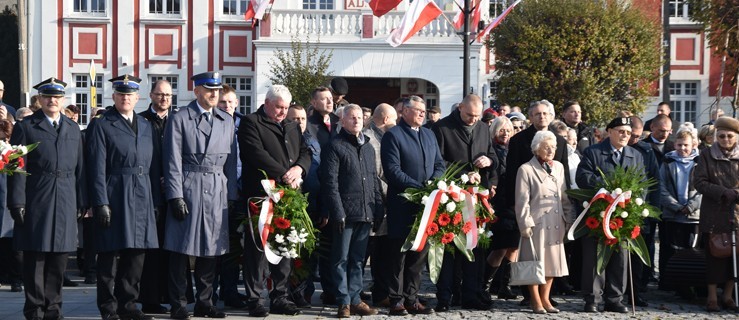 Na zakończenie uroczystości na rynku pod pomnikiem upamiętniającym odzyskanie wolności delegacje złożyły wieńce i wiązanki kwiatów.