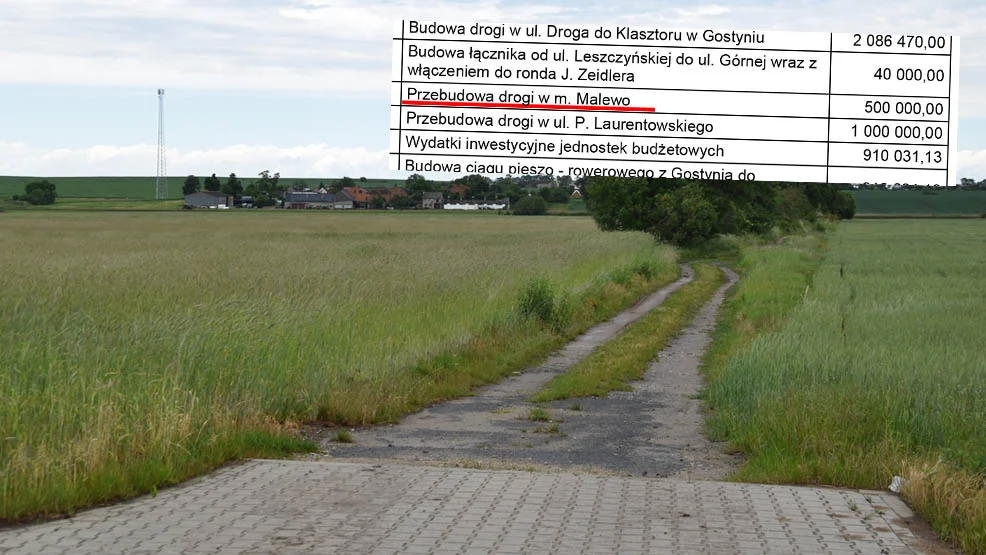 Gmina Gostyń buduje nową drogę. Gdzie? Z Malewa w kierunku Szczodrochowa, przez łąki. Po co? Żeby połączyć szosę gminną z wojewódzką w kierunku Kościana i ułatwić tranzyt. Jedna z większych firm ziemi gostyńskiej dokłada się do inwestycji.