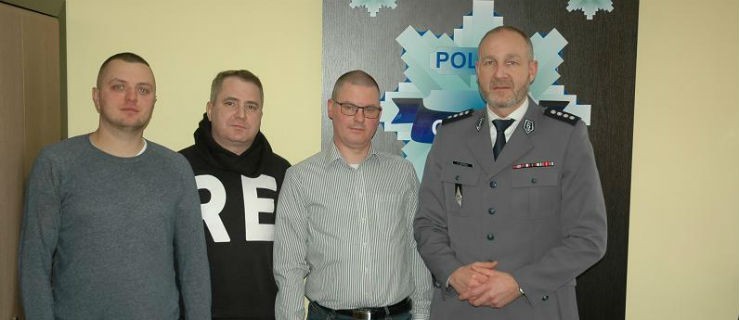 Komendant Powiatowy Policji w Gostyniu nadkomisarz Piotr Gorynia spotkał się z trzema mężczyznami, którzy zatrzymali sprawcę napadu na kobietę w centrum Gostynia.