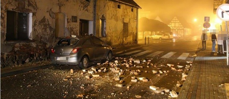 W godzinach wieczornych na zaparkowane tam auto runął komin. Na jezdni lezą cegły i gruz. Na miejsce zdarzenia przybyli policjanci oraz strażacy z OSP Poniec.