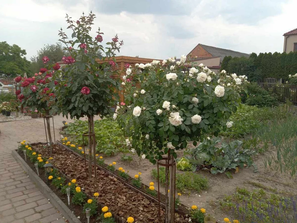 Róże to ukochane krzewy Eweliny Waligóry. Niektóre pamiętają jeszcze babcię właścicielki i - zdaniem gospodyni ogrodu - prezentują się o wiele lepiej niż współczesne odmiany. Róże wielkokwiatowe, rosnące wzdłuż ogrodzenia, witają gości, z kolei te szczepione na pniu, są ozdobą rabat. Wszystkie powtarzają kwitnienie, zachwycając kolorami i zapachem nawet trzy razy w sezonie.