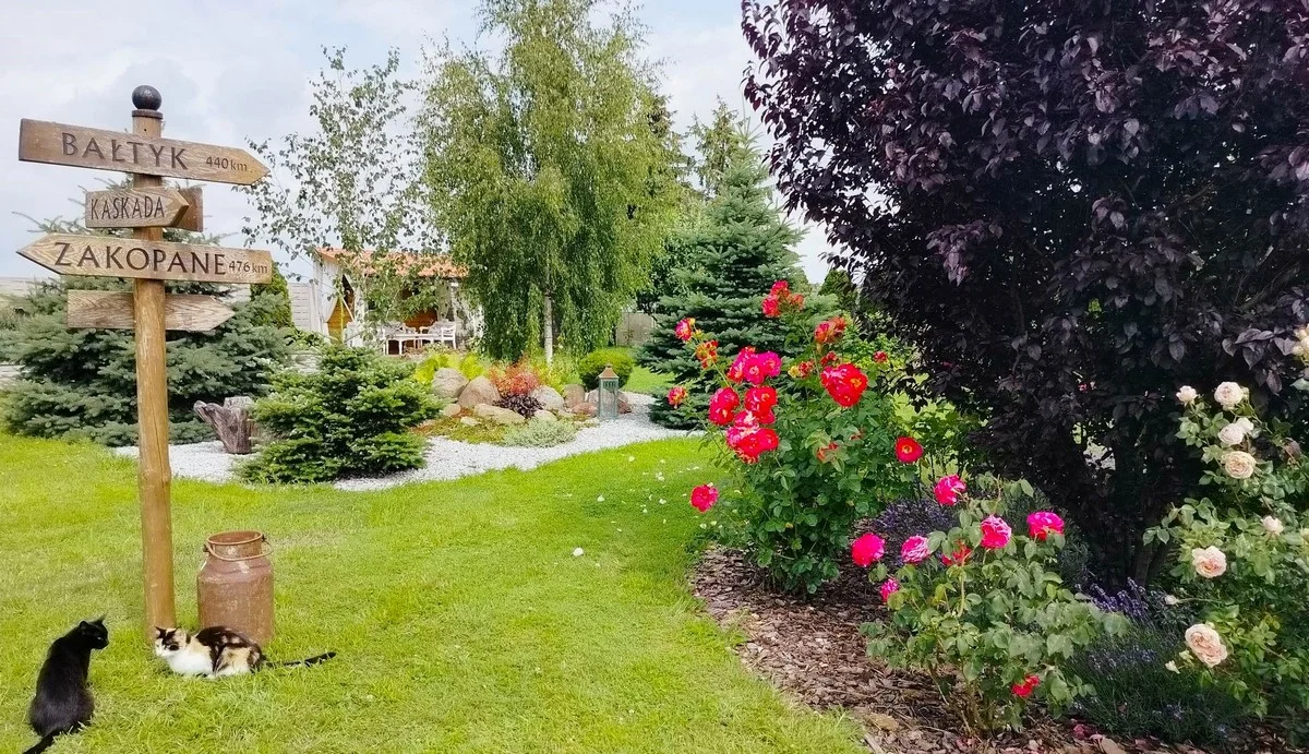 Ogród, będący oczkiem w głowie Katarzyny Kaniewskiej-Skowronek i jej męża, Macieja, to wspaniałe miejsce do wypoczynku. Szum wody spływającej po kamieniach sporej kaskady, drzewa i krzewy tworzące zielony parawan, a także kilka pięknie zaaranżowanych miejsc wypoczynku, sprawiają, że nie chce się stąd wychodzić.