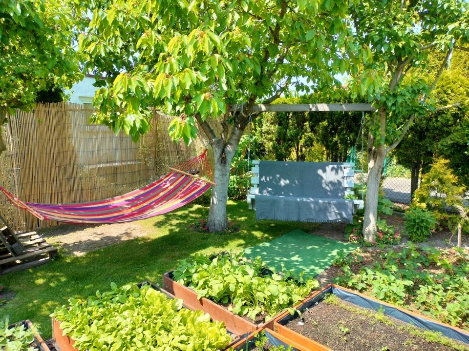 Państwo Nowak mają powody do dumy ze swego zielonego zakątka, bo dziś nie przypomina on zaniedbanej i zarośniętej działki. Gości wita przy wejściu okazały krzew żylistka szorstkiego o pięknych, jasnoróżowych kwiatach. Pomiędzy drzewami owocowymi zawisła huśtawka zapraszająca do odpoczynku. Zaraz obok, dosłownie pod ręką, na wyniesionych grządkach pysznią się warzywa, w skrzyniach rosną krzewy pomidorów. Ciekawą ozdobą działki jest stara pompa wtopiona w zielone otoczenie. Miłym dla oka uzupełnieniem są kolorowe byliny, na przykład żurawki i trawy ozdobne.