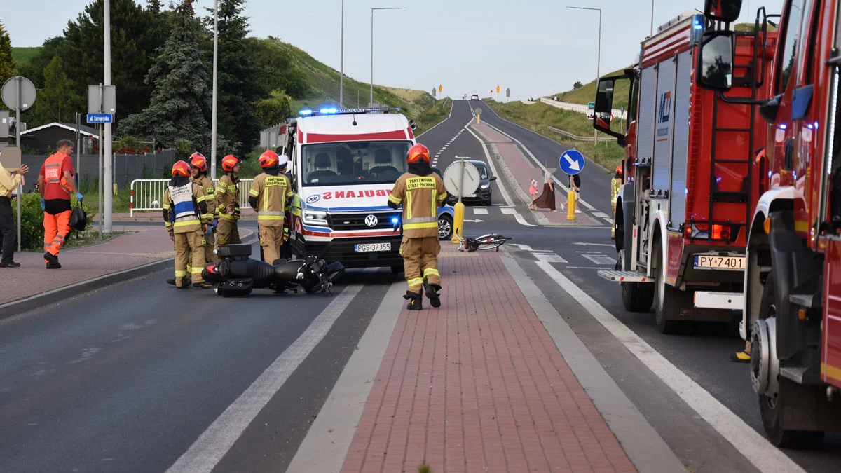 - Wskutek zdarzenia ucierpieli oboje. Motocyklista, który jest poznaniakiem, doznał obrażeń na prawej nodze, udzielając pomocy, zabezpieczyliśmy ten uraz. W międzyczasie na miejsce dotarł zespół ratownictwa medycznego, poszkodowanego przekazaliśmy w ręce ratowników - wyjaśniał asp. sztab. Wojciech Idkowiak, dowódca zmiany JRG, kierujący działaniami ratowniczymi na miejscu zdarzenia.