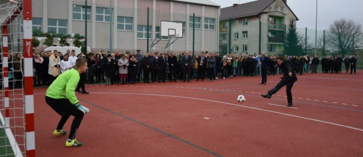 Boisko przetestowali samorządowcy i nauczyciele wychowania fizycznego – bramki strzelali m.in. starosta Robert Marcinkowski i wójt Wiesław Glapka.