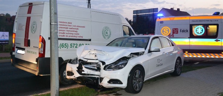 Do zderzenia dwóch samochodów: osobowego mercedesa i dostawczego busa, doszło w niedzielę, po godzinie 6.00 rano przy ulicy Jana Pawła II w Gostyniu.