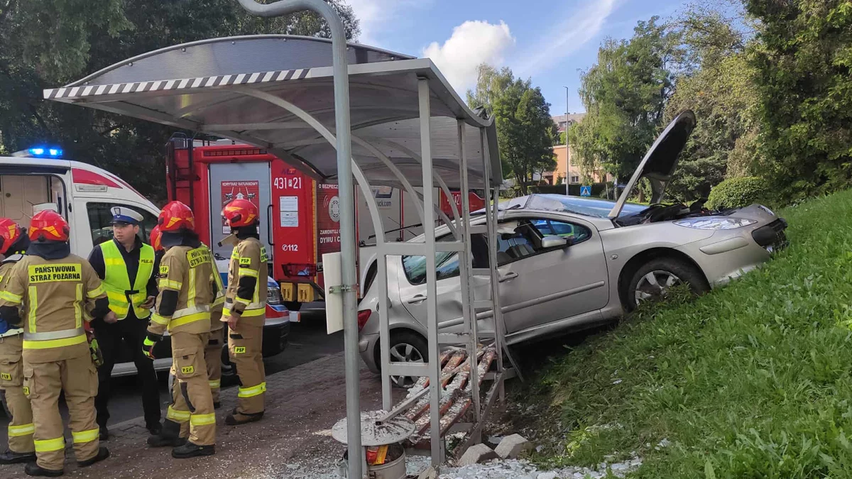 - Siedziałem, przeglądałem telefon i paliłem papierosa. Po chwili słyszę huk, okręciłem się i patrzę, jak samochód leci, nie idzie łukiem, ale jedzie prosto na przystanek. Na szczęście zdążyłem uciec. Pani wjechała na skarpę, wyrzuciło ją tak, że samochód znalazł się w powietrzu i zatrzymał na przystanku. Ta kobieta siedziała w aucie na fotelu pasażera, więc chyba jechała bez pasów, skoro się przemieściła - mówił roztrzęsiony mężczyzna.