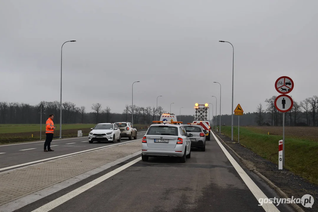 Wykonawca wraz z inwestorem – przedstawicielami GDDKiA w oznakowanych pojazdach prowadził długi szpaler samochodów, które jako pierwsze, o godz. 12.12 wjechały na drogę. Wśród nich znajdowało się również auto w którym jechał burmistrz Gostynia Jerzy Kulak z zastępcą Maciejem Czajką, był strażak-ochotnik z Goli i mieszkańcy Gostynia. Patrol gostyńskiej policji oznakowanym radiowozem zdecydował się zrobić rozeznanie na trasie, ale już poza szpalerem.