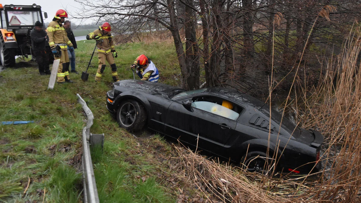 - Prawdopodobnie kierujący fordem mustangiem nie dostosował prędkości jazdy do warunków, jakie panują na drodze. W ten sposób stracił panowanie nad kierownicą i po śliskiej skarpie wjechał tyłem do stawu - relacjonował asp. sztab. Wojciech Idkowiak z KP PSP w Gostyniu, kierujący działaniami ratowniczymi.