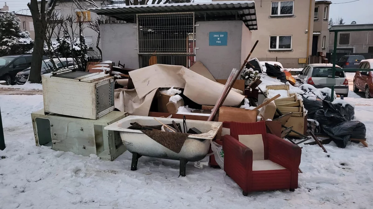Pracownicy Straży Miejskiej w Gostyniu otrzymali informację o dużej stercie śmieci, która pojawiła się przy śmietniku, na terenie jednego z gostyńskich osiedli. Na placu pomiędzy blokami a domkami jednorodzinnymi leżały odpady, takie jak wanna, kuchenka gazowa, lodówka, meble (fotele, szafy - niektóre w całości, inne w kawałkach), był też dywan i wiele innych elementów wyposażenia kuchni oraz pozostałych mieszkalnych pomieszczeń.