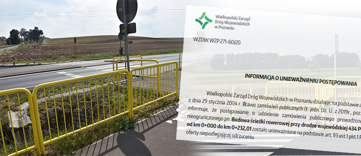 Nie wiadomo, jak będzie dalej przebiegała inwestycja, związana z dokończeniem ścieżki rowerowej w Krajewicach. Wielkopolski Zarząd Dróg Wojewódzkich na początku tygodnia unieważnił pierwszy przetarg ogłoszony na wyłonienie wykonawcy zadania związanego z II etapem budowy ścieżki rowerowej przy drodze wojewódzkiej 434 Poraj-Krajewice, na długości 232 metrów. Nie wpłynęła żadna oferta, co oznacza, że proces realizacji może się przedłużyć.