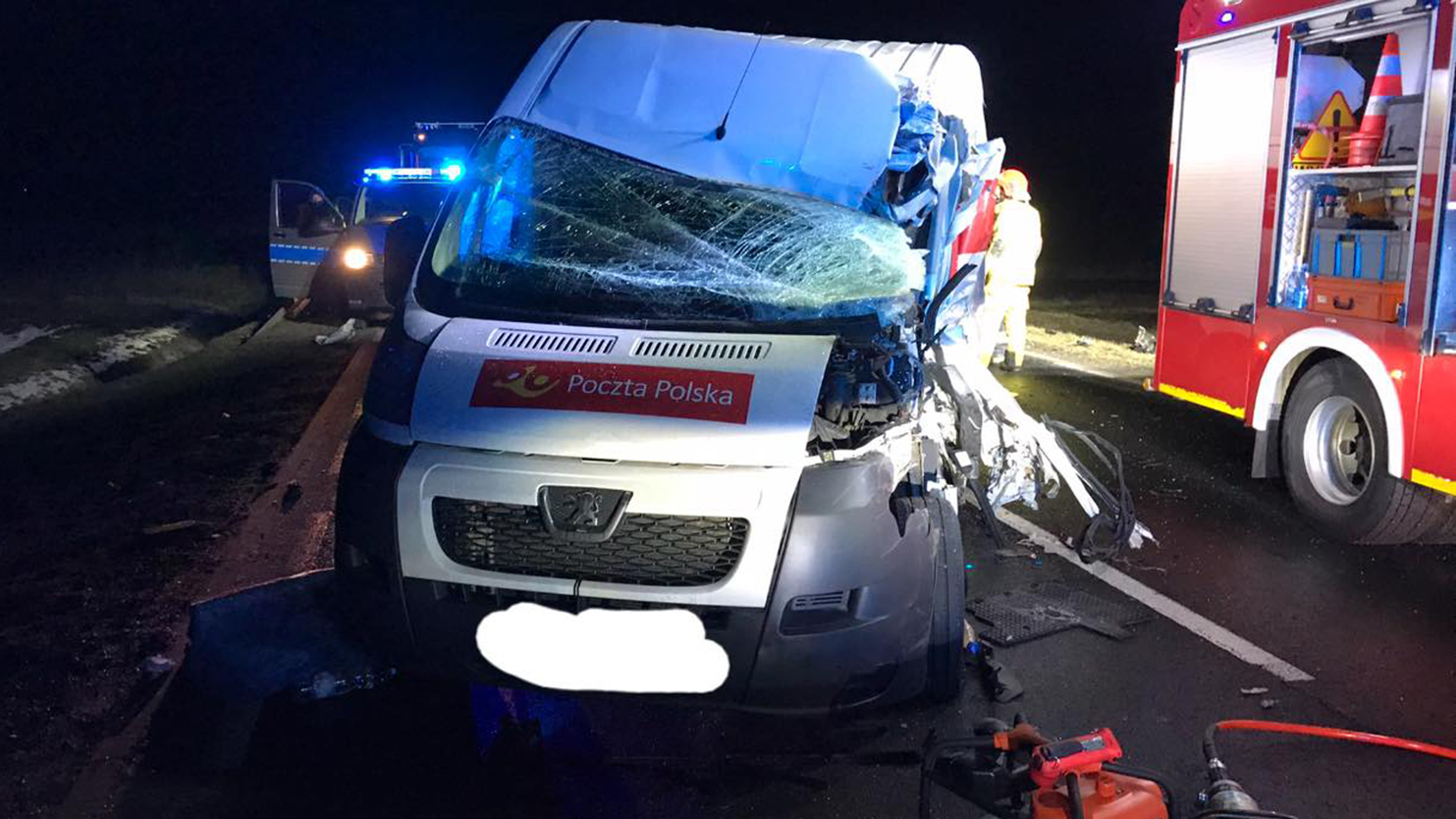 Zdarzenie miało miejsce około godz. 1.50 na trasie Gostyń - Żychlewo. Do akcji ratunkowej zaangażowano wszystkie służby: straż pożarną (zastępy JRG Gostyń, OSP z Krobi) oraz zespół ratownictwa medycznego. Ze wstępnych ustaleń wynika, że 50-letni mieszkaniec Wałbrzycha jechał peugeotem boxerem od strony Gostynia. Nagle samochód "Poczty Polskiej" zjechał na lewy pas ruchu.