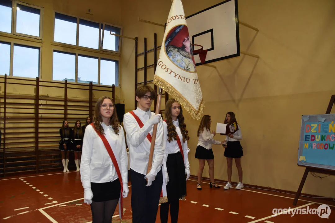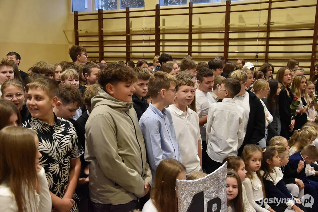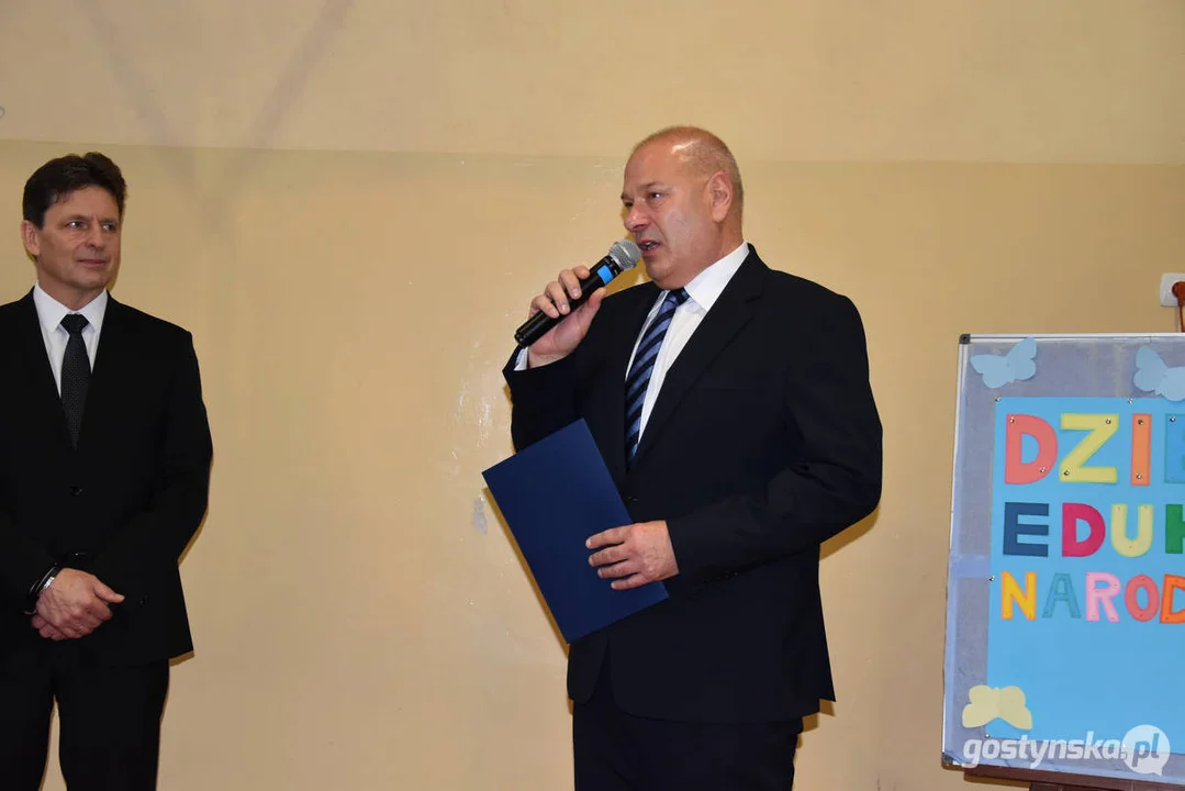 Zaplanowano uroczystość w plenerze, jednak jesienna aura pokrzyżowała plany, przyciągając deszcz. Gospodarze oraz zaproszeni goście zebrali się w sali gimnastycznej. Chwilę później obecni dowiedzieli się, że tegoroczne święto nauczycieli ma dla społeczności Szkoły Podstawowej nr 3 w Gostyniu szczególny wymiar.
