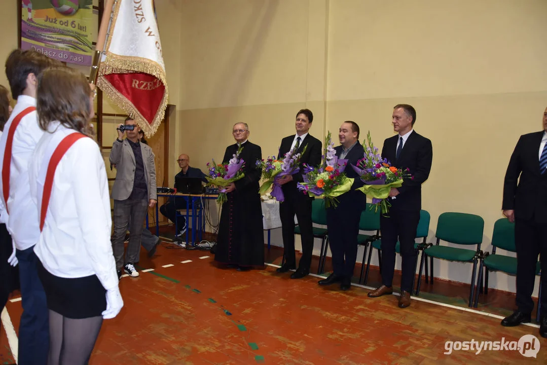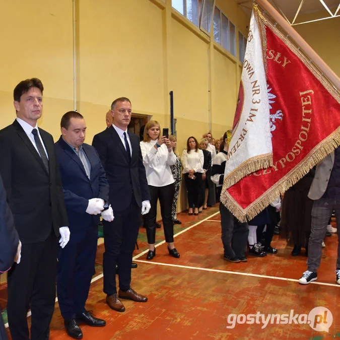 Dyrektor szkoły Marek Rożek przypomniał, że 60 lat temu w gostyńskiej „Trójce” rozpoczął się pierwszy dzień nauki. W tym czasie mury szkoły opuściły rzesze absolwentów, liczne pokolenia mieszkańców Gostynia.