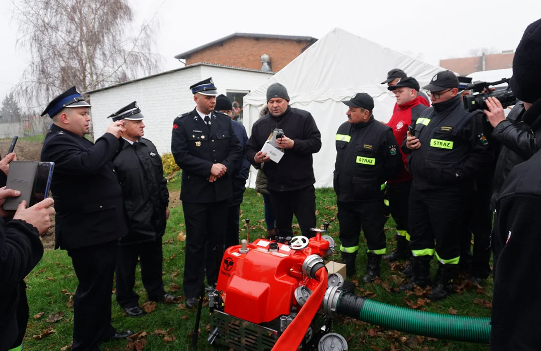 - Zakup tych motopomp znacząco podniesie poziom bezpieczeństwa przeciwpożarowego w naszych gminach, a także umożliwi bezawaryjne i długotrwałe ich użytkowanie - podkreślał dh G. Wabiński pełniący obowiązki gospodarza. - Nowe motopompy zastąpią już nasze poczciwe, półwieczne prawie urządzenia z lat 70-tych. Te nowe motopompy przydadzą się w działaniach gaśniczych czy ćwiczeniach bojowych, ale i na zawodach pożarniczych.