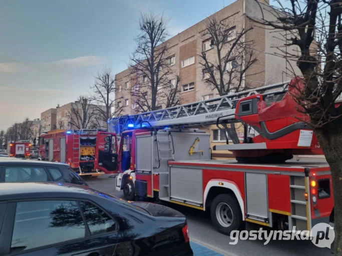 Ogień pojawił się na pierwszym piętrze, w jednym z bloków na osiedlu Konstytucji 3 Maja w Gostyniu. Było to przed godziną 17.00, kiedy w mieszkaniu nie było lokatorów. Straż pożarną o zdarzeniu powiadomili sąsiedzi, którzy zwrócili uwagę na coraz silniejszą woń spalenizny i dymu, jakie panowały na klatce schodowej. Dyżurny na stanowisku kierowania komendanta powiatowego PSP w Gostyniu do akcji gaszenia pożaru skierował 3 zastępy straży pożarnej, w tym wóz strażacki drabiną i koszem.