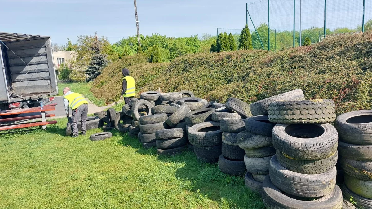 Usuwanie opon z pomocą skazanych na prace społeczno-użyteczne